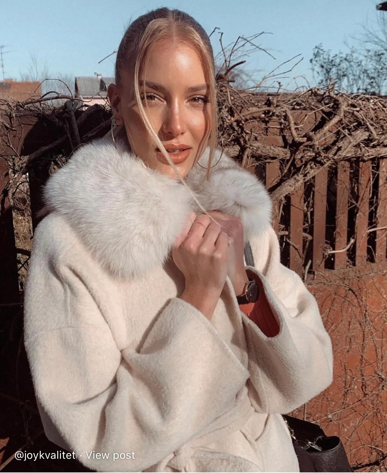 Details: Belted around the waist with two visible pockets on each side, Hoodie with removable Fox fur