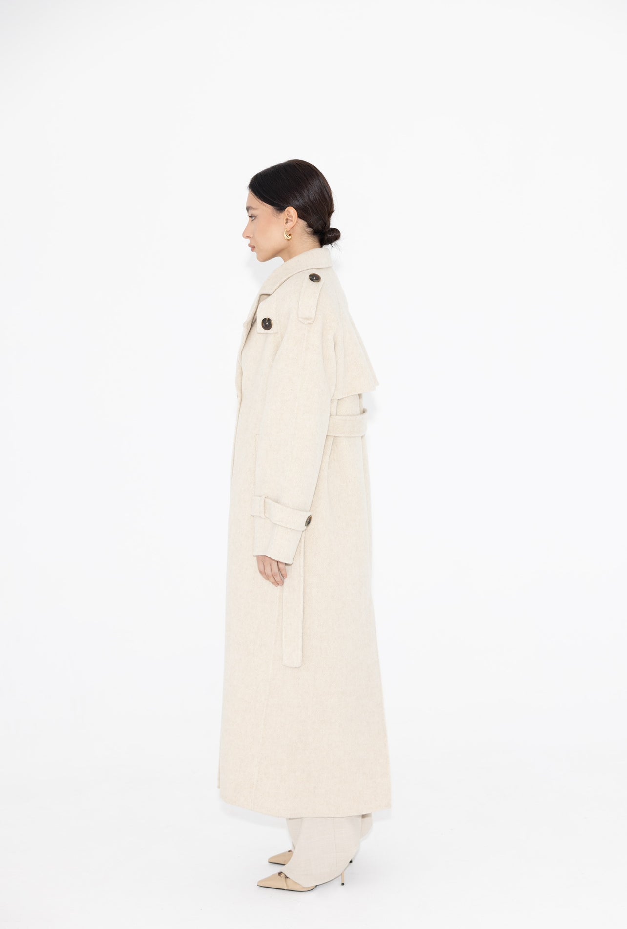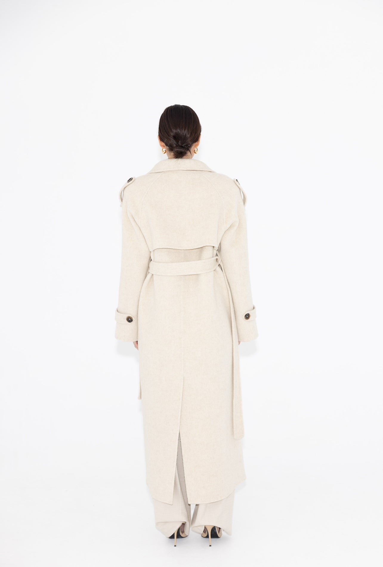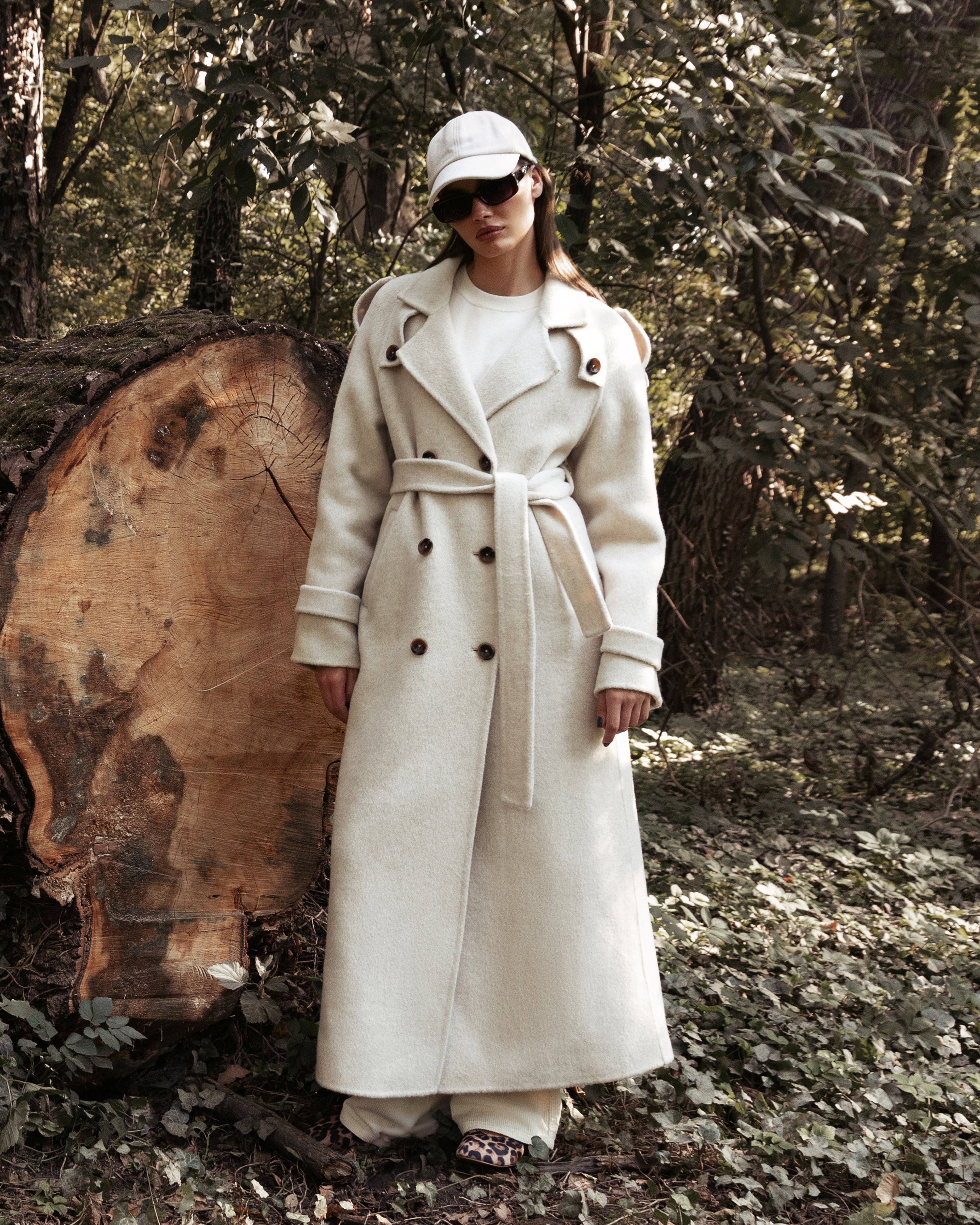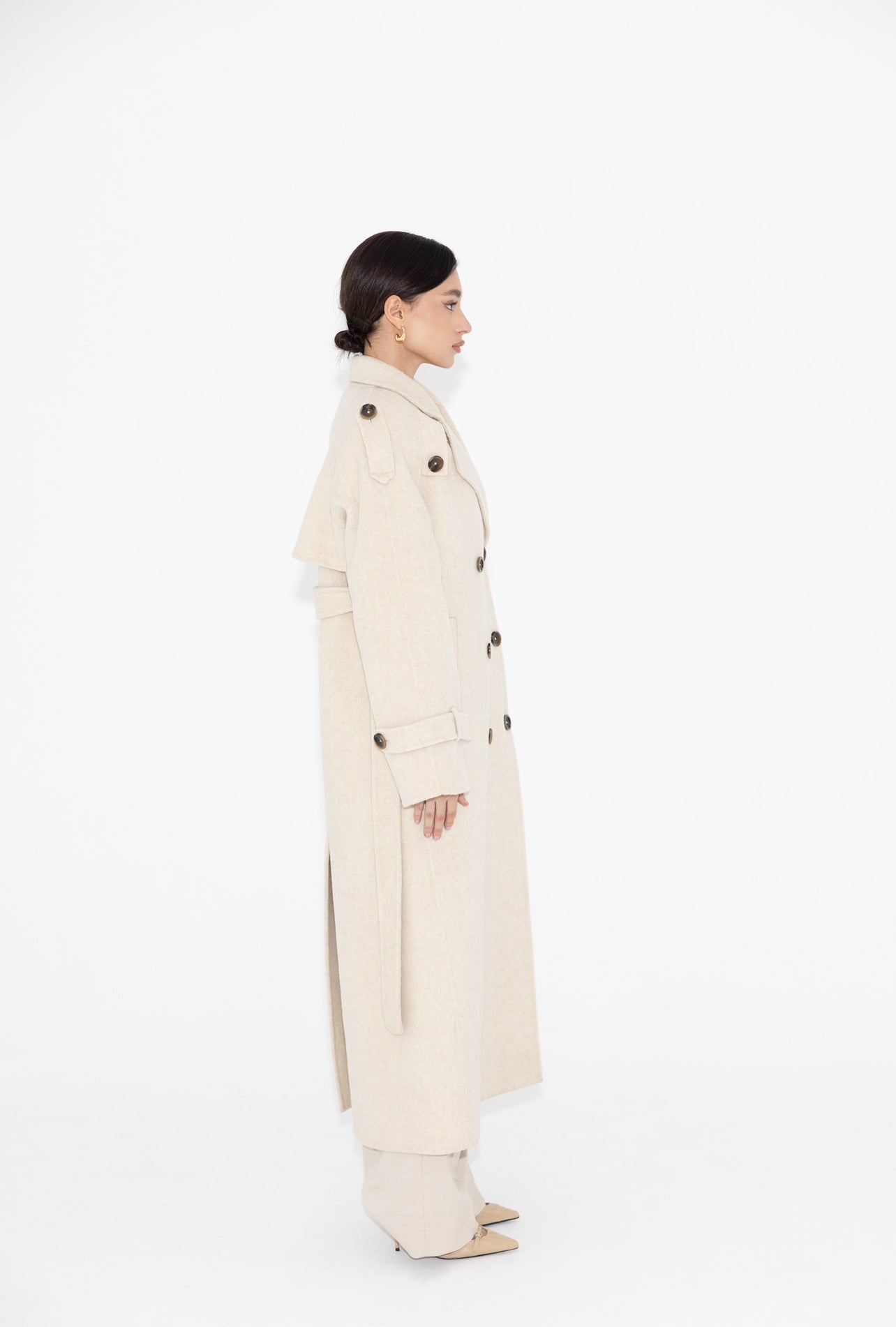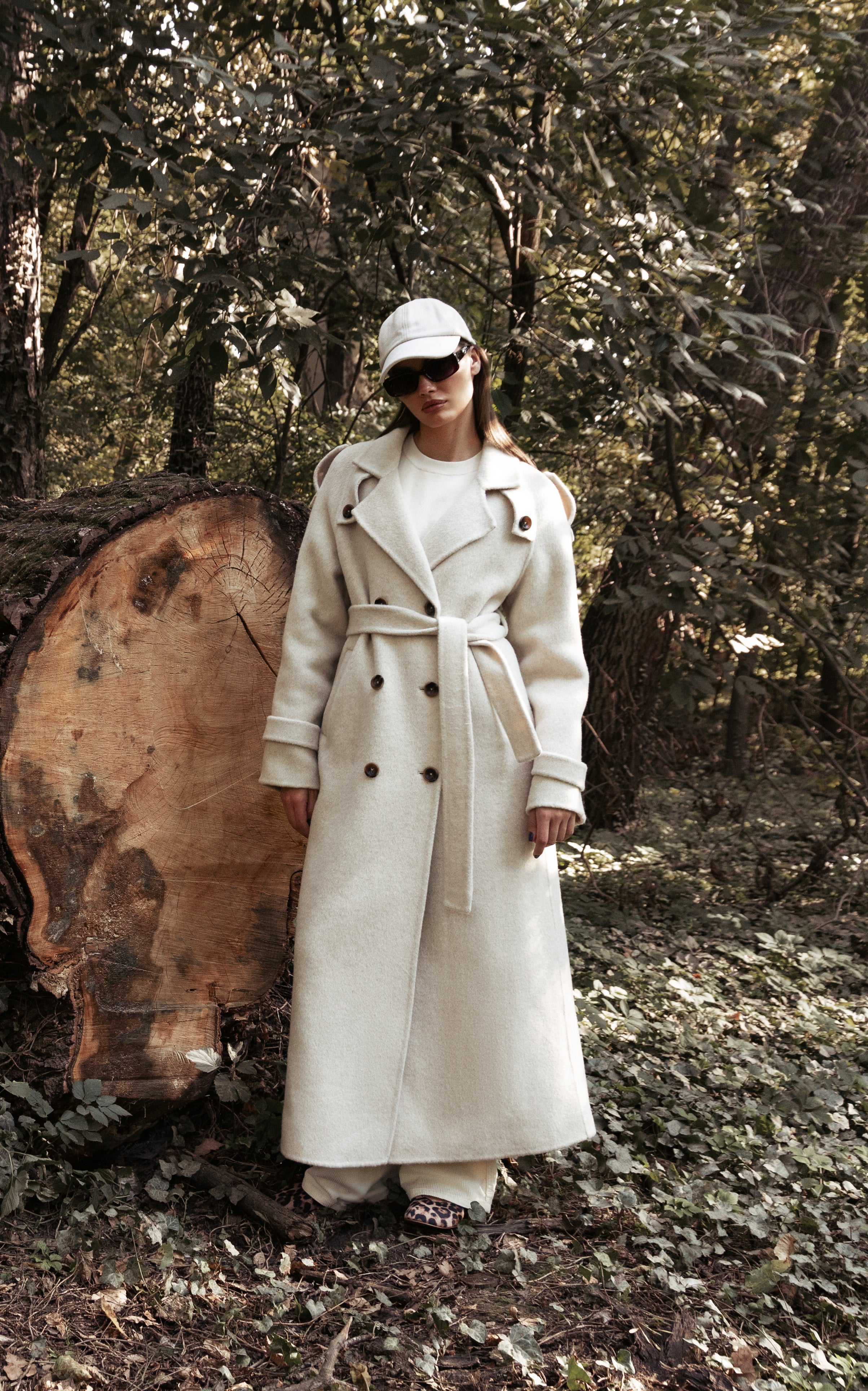 ELSIE JOY Coat is a modern masterpiece featuring standout details such as belts on the shoulders and around the sleeves, complemented by sleek buttons. The waist belt effortlessly alters the silhouette, making this coat a preffered choice for many. Perfect for a street-style look, it exudes contemporary flair, yet can be styled for more elegant ensembles depending on the color and accessories.