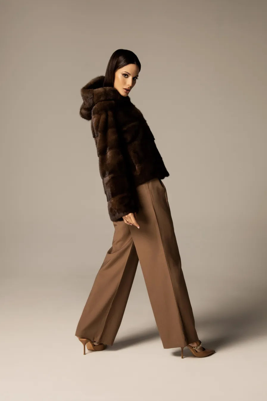 GRETA Brown mink hoodie coat