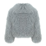 The JOY Mongolian Shearling Jacket is an embodiment of opulence and warmth. Crafted from the finest Mongolian lamb fur, this coat showcases the lush, long, and curly texture that is unique to Mongolian sheep. Known for its exceptional softness, this natural fur not only provides luxurious comfort but also creates a striking visual effect that exudes sophistication. Mongolian shearling is renowned in the fashion world for its versatility, seamlessly transitioning from casual to high-end looks, while offering durability that ensures long-lasting beauty.