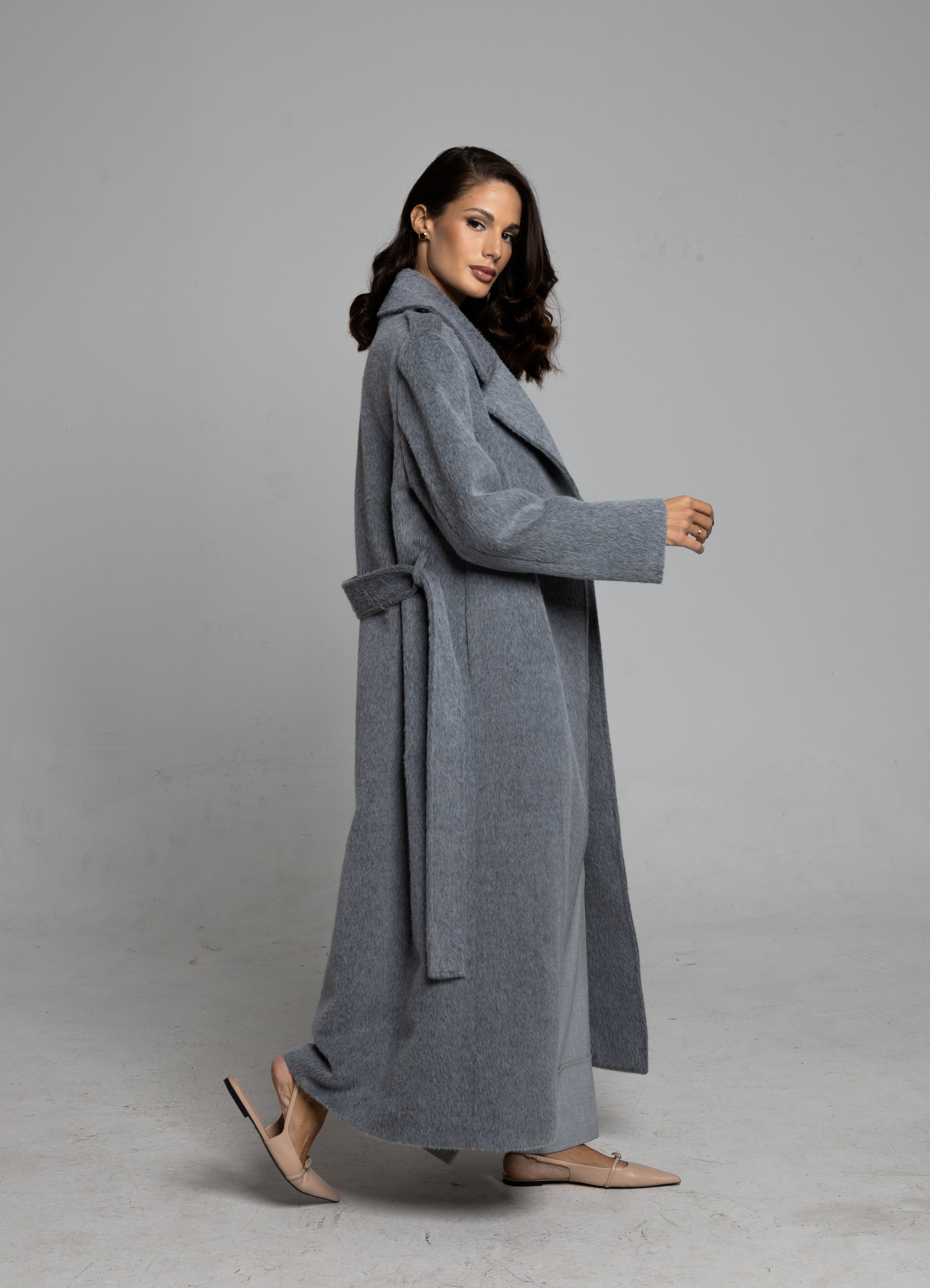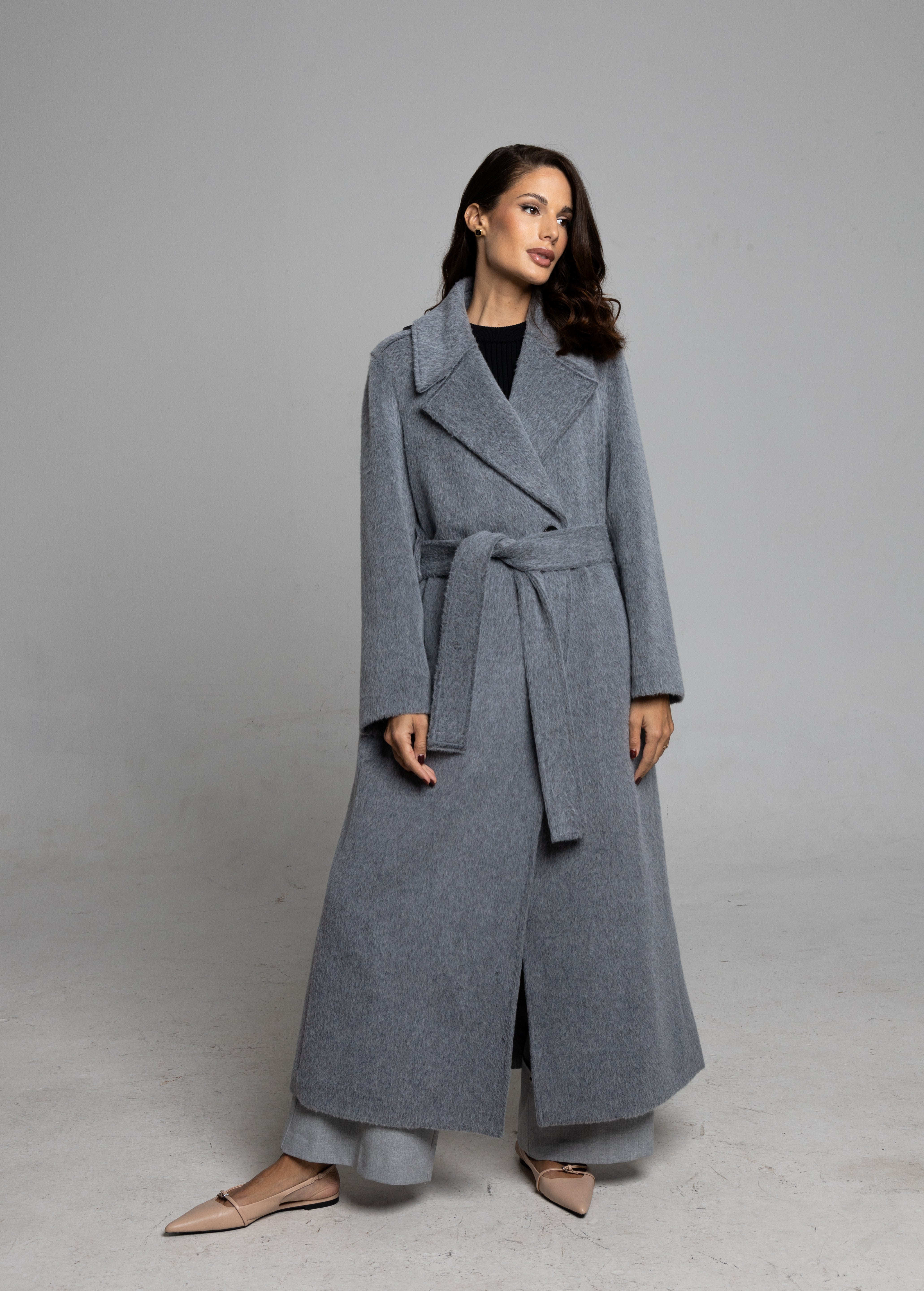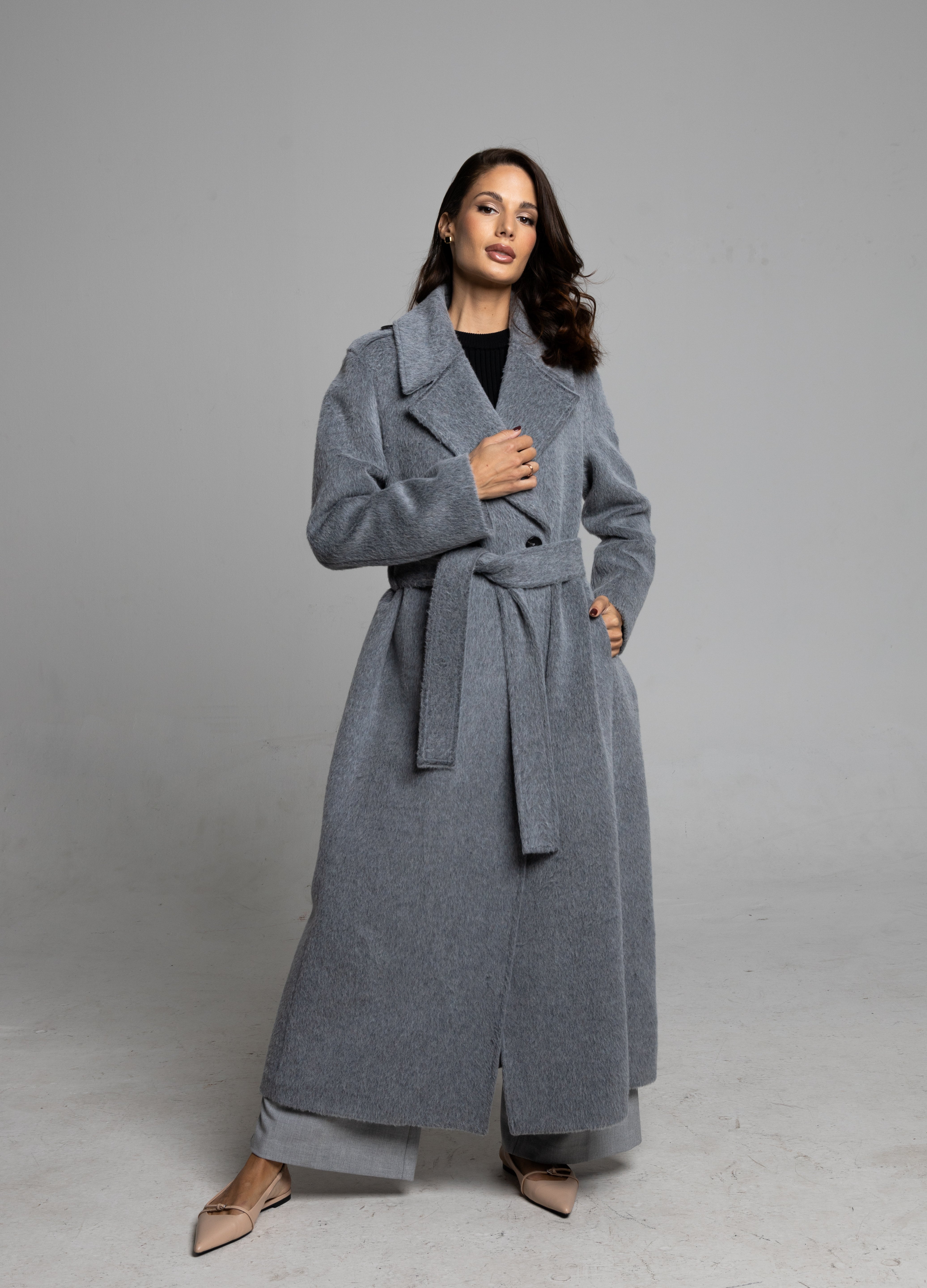 The JOY royal alpaca wool coat exudes elegance and exclusivity, showcasing the refined qualities of this extraordinary material. Renowned for its lightweight warmth, softness, and durability, alpaca is a luxurious choice that provides exceptional comfort and sophistication. The coat’s perfectly tailored shoulders enhance its silhouette, offering a flattering and polished look. Its versatile gray hue pairs effortlessly with any color, making it easy to style for any occasion. Elevate your wardrobe with this timeless piece, embodying a perfect blend of luxury and practicality.