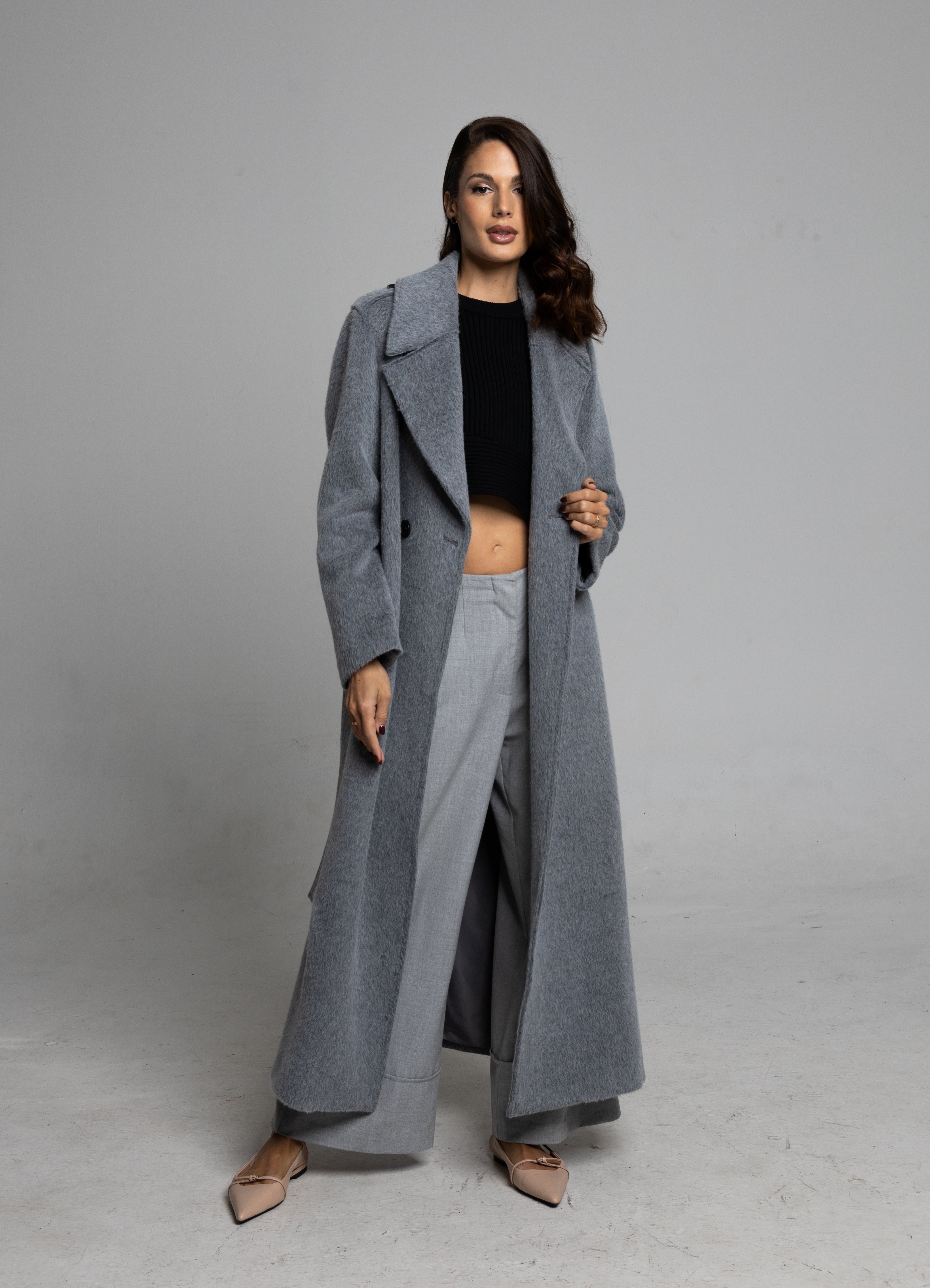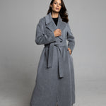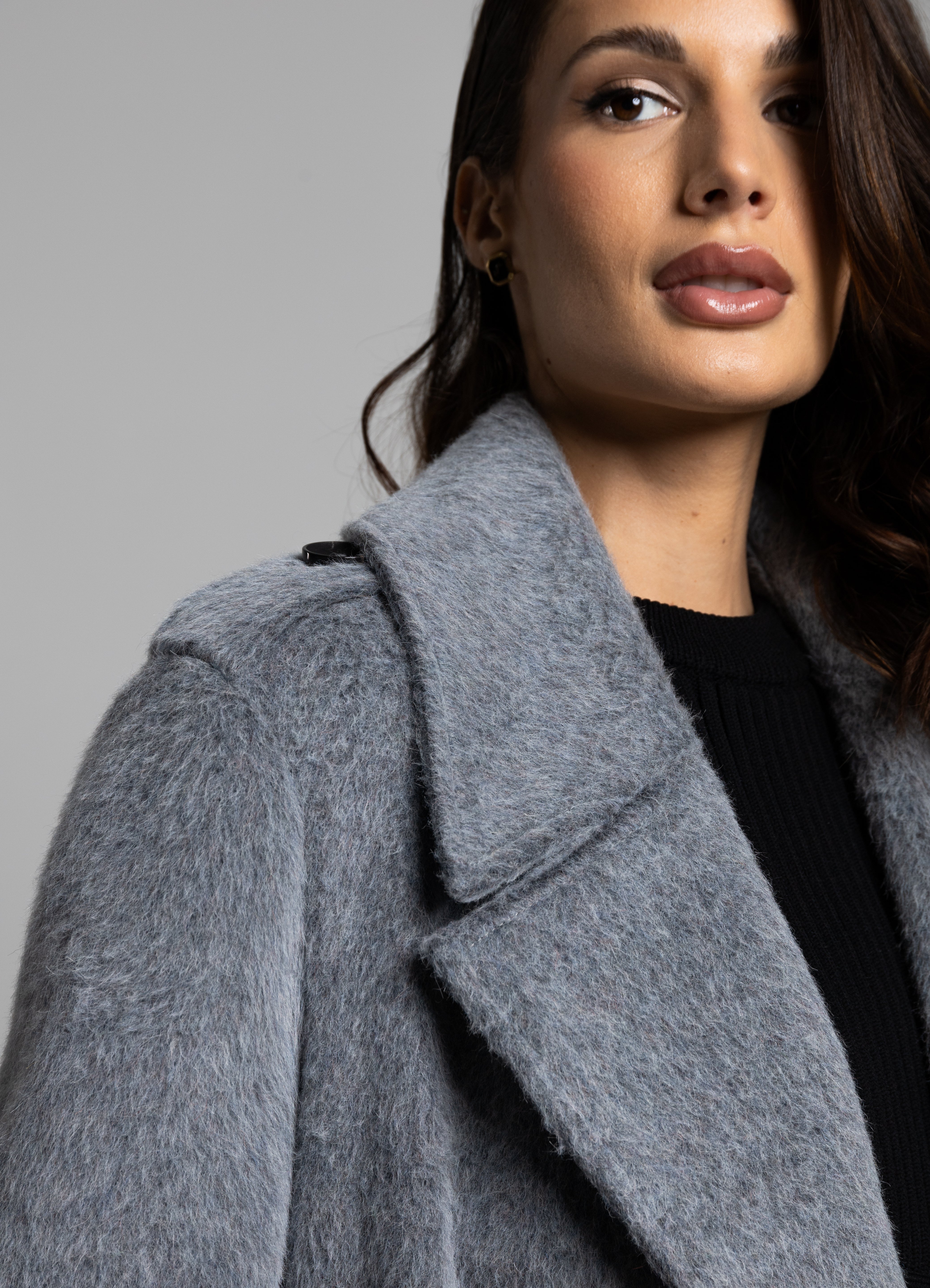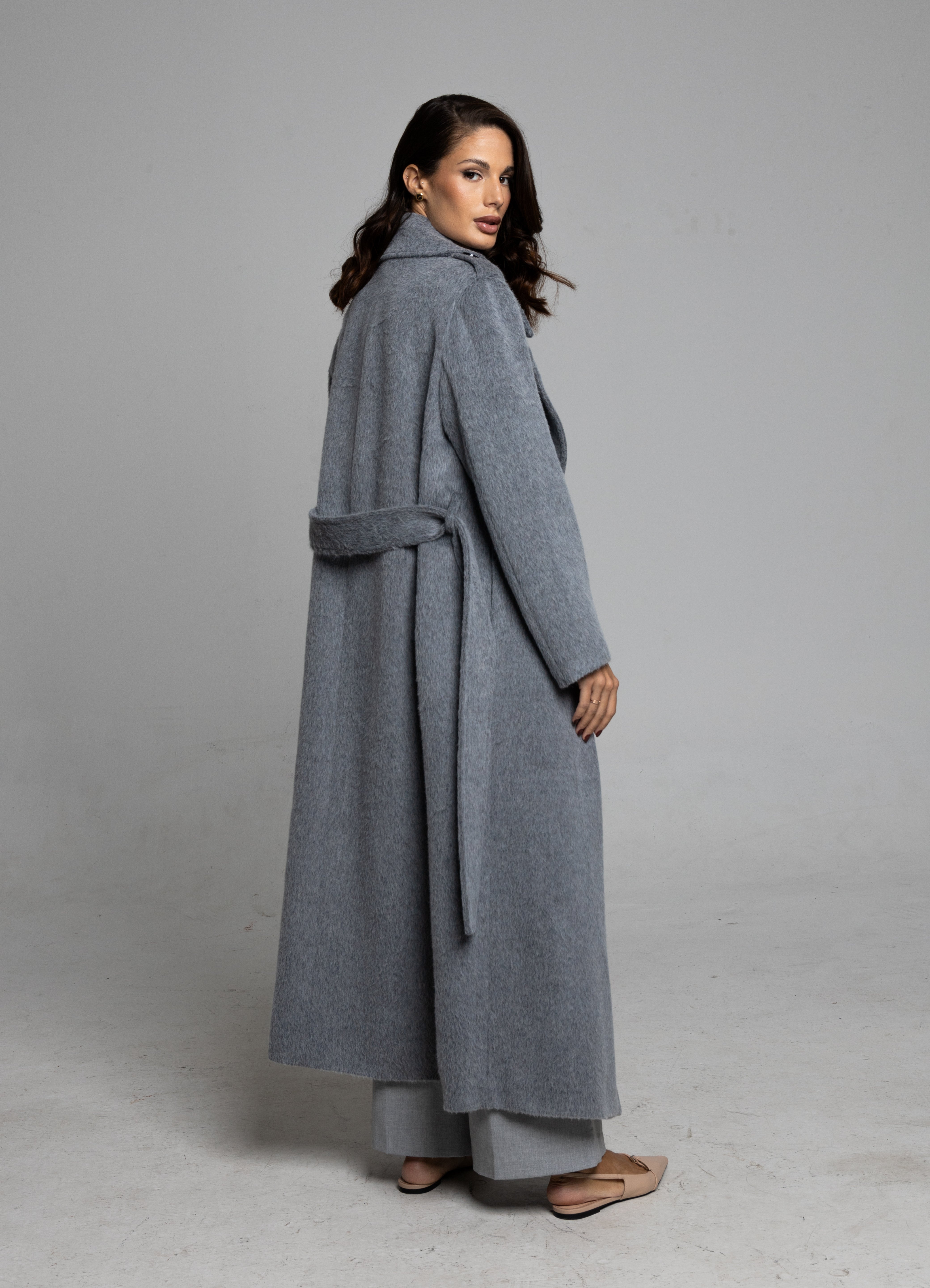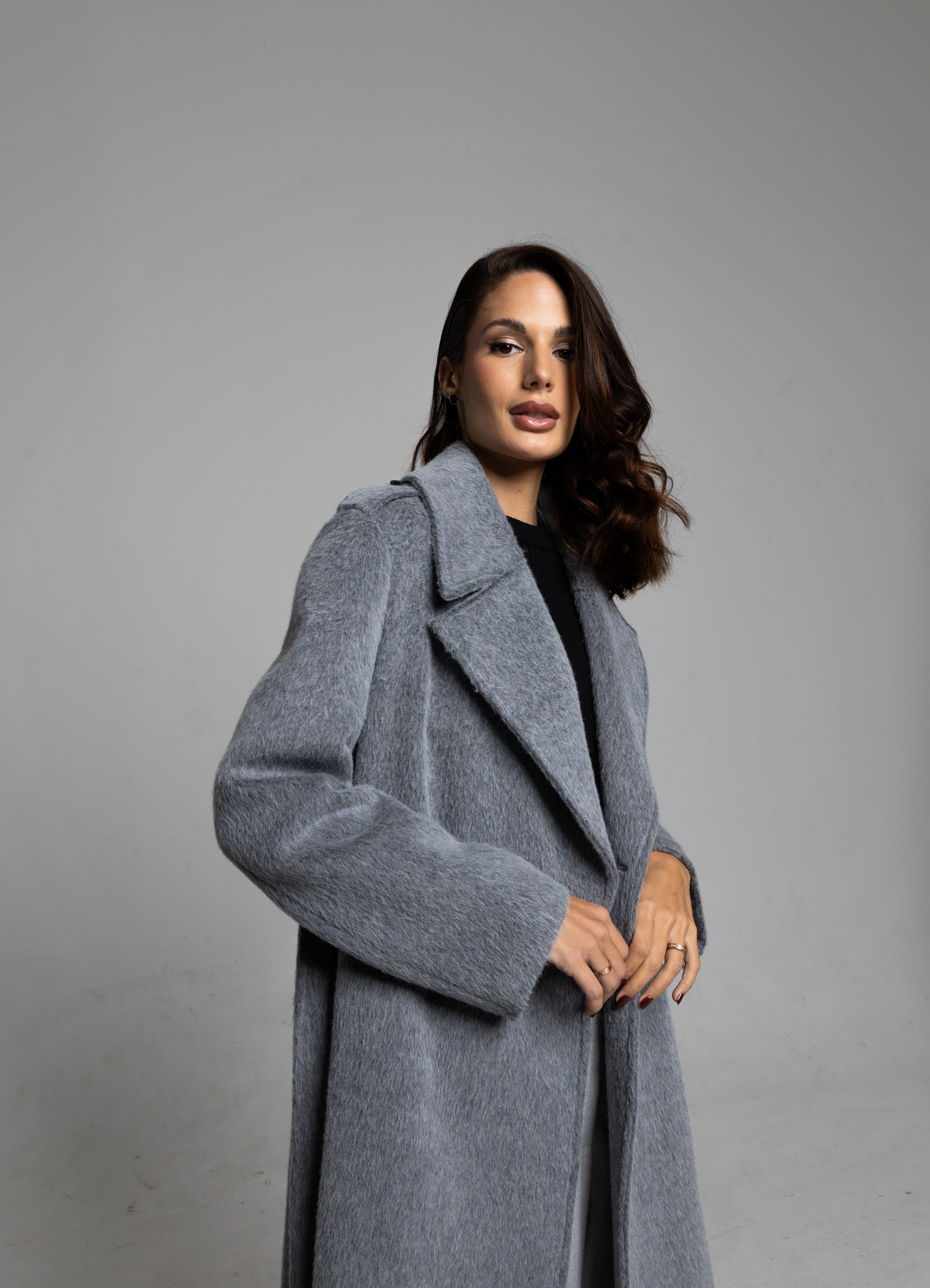 The JOY royal alpaca wool coat exudes elegance and exclusivity, showcasing the refined qualities of this extraordinary material. Renowned for its lightweight warmth, softness, and durability, alpaca is a luxurious choice that provides exceptional comfort and sophistication. The coat’s perfectly tailored shoulders enhance its silhouette, offering a flattering and polished look. Its versatile gray hue pairs effortlessly with any color, making it easy to style for any occasion. Elevate your wardrobe with this timeless piece, embodying a perfect blend of luxury and practicality.