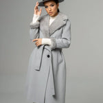 Details: Belted around the waist with two pockets on each side, Removable Mink fur collar, Removable Mink fur sleeves
