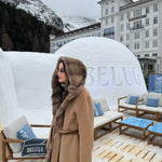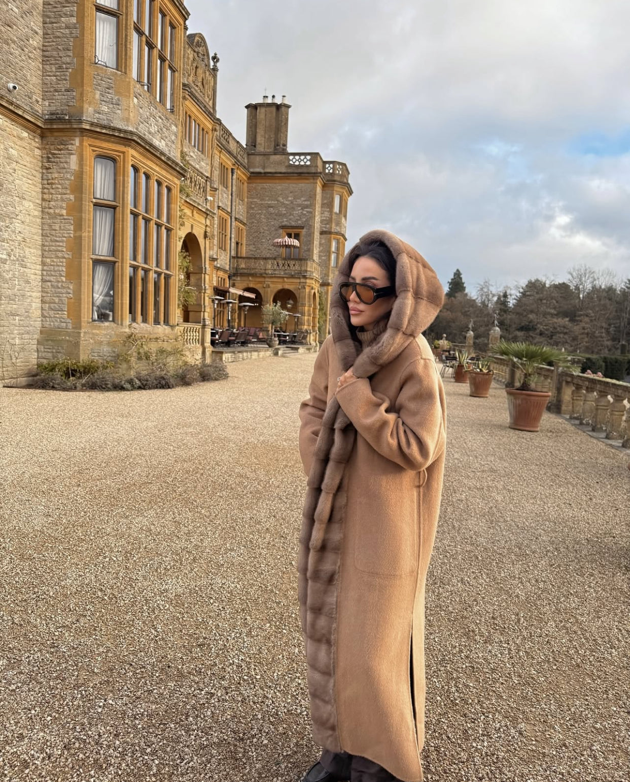 A true masterpiece of craftsmanship, this coat is one of the most exceptional pieces in our collection, designed with the utmost attention to detail. Expertly crafted from the finest wool and cashmere, it is luxuriously lined with premium Danish mink fur, which extends along the entire length of the coat on both sides. The hood is also fully enveloped in mink fur, adding to its unparalleled elegance and warmth.